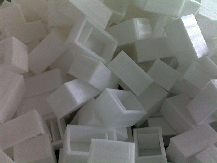 用于一些電子元件中,可以根據產品的形狀量身定做各種各樣的造型,由于珍珠棉導熱率很低隔熱性很優,柔軟性和緩沖性很好,獨立氣泡的珍珠棉有很好的防振效果,并可作防止靜電處理;可以完美的保護產品不受外力的因素受到破壞。在一些大型設備運輸包裝中,將珍珠棉用于設備與木箱中間的填充物,可以起到非常好的緩沖、保護作用。